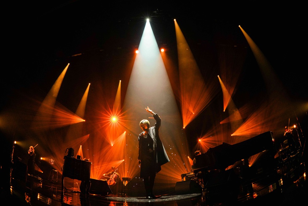 いわずもがな本曲はKの代表曲である。「人は弱くてもいい」「それでも生きていく」というメッセージを、極めてシンプルかつ真っ直ぐな言葉で描いている。GACKTとのユニゾンは言うまでもなく美しい。先3曲が「別れ」をイメージさせる曲であるのに対し「生」を強くイメージできるこの曲で、会場の空気も一気に塗り替えられた。ストリングスのみで構成されたアレンジは圧巻そのもの。ツインチェロを含んだ重く低い多重奏が、場内に深く豊かな響きを広げていく。その瞬間は、ただただ心を掴んで離さない、この上ないモーメントとなった。